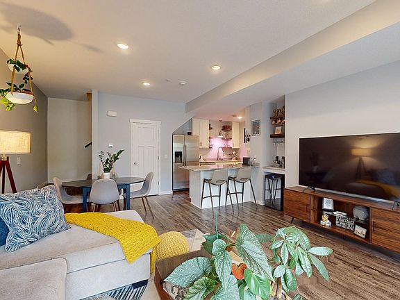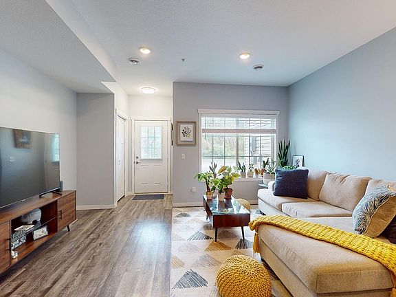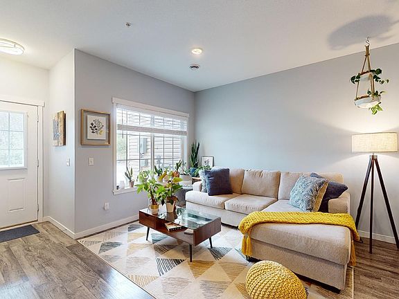 You are going to LOVE this location of this move-in ready townhouse that is located across the street from the Douglas Trail and city bike paths. This elegant 2-bedroom, 2-bathroom gem is a serene retreat boasting a blend of modern comfort and natural beauty. Step into the spacious, open-concept living area graced with 9-foot ceilings, with vinyl planking flooring. The kitchen, adorned with sleek granite countertops, white cabinetry, and extended island for extra seating which invites culinary creativity! Upstairs you will find two large bedrooms, large closets, laundry at the top of the stairs and a full bathroom with a soaking tub and shower. This place is better than new as it comes with window treatments, water softener, extra shelving and a finished garage space with epoxy floors. The low $175/monthly association fee covers lawn care, snow removal, exterior insurance & exterior maintenance.
