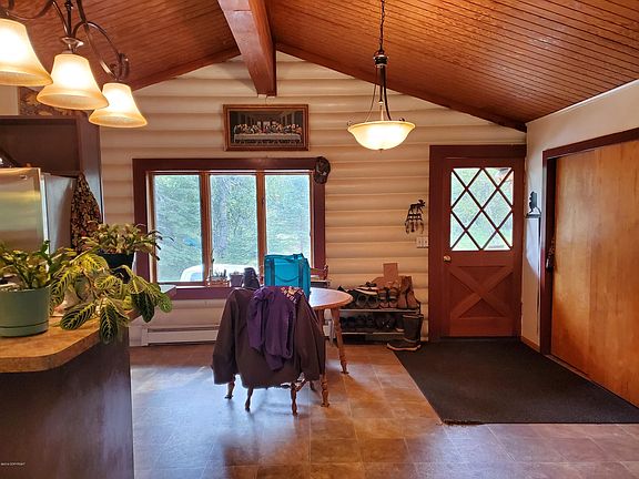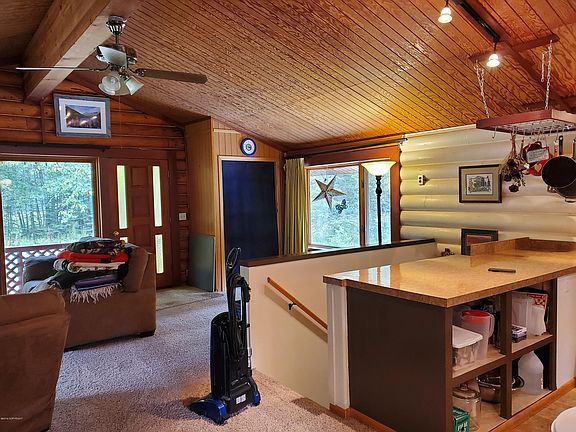 Charming and cozy log home on almost an acre. 2 bedrooms that are not legal bedrooms because of windows . , open floor plan, Has a garage and shed. With some work bedrooms can be legal bedrooms with legal egress windows.