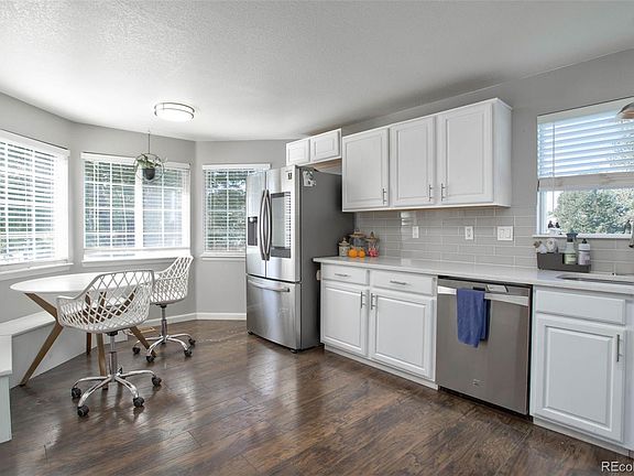 Beautiful 5 bedroom, 3 1/2 bath, three story single family home, with a fully finished basement on a huge corner lot in cul-de-sac. Includes stainless steel appliances in kitchen, and modern upgrades throughout. Washer and dryer and state-of-the-art security system included. Family room includes a breathtaking vaulted ceiling and fireplace. A wraparound staircase takes you from the main level to the upper levels. Contemporary ceiling fans in family room and master bedroom. Primary bedroom includes walk-in closest. Bonus room on the lower level and finished basement with two bedrooms (1 non-conforming) and a full bath. Quartz countertops and upgraded backsplash in kitchen, as well as quartz countertops and tile flooring in the 3 full baths. Newer laminate flooring and carpeting throughout. Brand new roof and new interior paint throughout. Fully fenced backyard with gated access from street, as well as gated access from front yard. Backyard includes a large covered deck, patio, gazebo, storage shed, hot tub, firepit, and water feature. Neighborhood park directly across from cul-de-sac entrance. Golf course and reservoir close by.