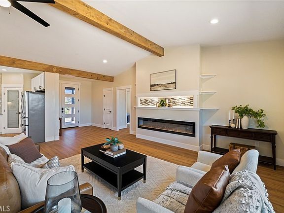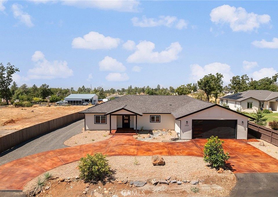 SOOO MUCH VALUE IN THIS ELEGANT, BEAUTIFULLY CRAFTED NEW CONSTRUCTION PARADISE HOME WITH SHORT 15 MINUTE COMMUTE TO CHICO! This stunning home offers 3 spacious bedrooms and 2 luxurious bathrooms across 1,863 sq ft of thoughtfully designed living space! In addition, this stunning home has OWNED SOLAR! Step into the polished entryway and enjoy seeing the expansive great room, where custom beamed high ceilings and a sleek electric fireplace with lighted mantel, create a warm atmosphere. The open-concept layout seamlessly connects the living, dining, and kitchen areas—perfect for entertaining. The chef’s kitchen is a showstopper, featuring an island with breakfast bar with designer cabinetry, pot filler above the gas stove, walk-in pantry, farmhouse sink, stainless steel appliances, quartz countertops, and subway tile backsplash that stretches to the ceiling, accented by floating shelves. Split floor plan allows privacy for your guests with 2 bedrooms and features a guest bath with extra deep bathtub, shower enclosure tiled to the ceiling and glass sliding doors. The Primary Suite is a private retreat with two separate walk-in closets and access sliding doors to the backyard. Spa-inspired bathroom boasts a walk-in shower with dramatic floor-to-ceiling tile and dual vanities.  Durable LVP flooring runs throughout the home, while the separate laundry room offers ample cabinetry. A custom bench with coat hooks greets you at the garage entry, adding charm and functionality. The epoxy-coated garage floors and stained circular driveway elevate the exterior, complemented by drought-resistant, defensible-space landscaping in the front yard. The .44-acre lot includes a spacious backyard with covered patio and ample room for RV parking along the side of the home. Owner will be adding gates on either side of the home to make the backyard fully enclosed. This home blends elegance, practicality, and modern design in one perfect package! Come home to Paradise!