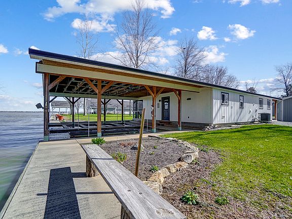 Lake enthusiasts, here is your opportunity to own a lake home on 2.20 acres with great lake views & plenty of privacy. This property has so much to offer! Originally built in 2015, the home was completely renovated in 2021 which included the addition of a master bedroom with walk-in closet, master bath & patio access, all with lake views. There is a second bedroom & second full bath, plus you will find a pull down Queen size murphy bed to accommodate extra guests. The open concept kitchen & family room leads to a screened-in porch, patio & large side yard all overlooking the channel, main lake & wooded state ground across the channel. All appliances stay & were new in 2021-2022 including a beverage cooler. Never run out of hot water with the tankless hot water heater. Lake access is conveniently right outside your back door with 2 covered boat lifts for your own private use. Additionally, there is 185' of capped seawall, approximately 950' of shoreline & a kayak launch. Your friends & family can launch their boats at the Little Chickasaw ramp just 1/4 mile down the road & have room to dock along your seawall. In need of storage? There is storage in the attic above the boat lifts & in the outbuilding. With installed supplemental heat & air, the 24X40 outbuilding offers garage space, a workshop, or even party space. With a 10' overhead garage door, there is room to store your boat & trailer inside the building. Plenty of parking outside, too. With all this space, just think of the possibilities! No homeowners' association. If you love to fish, boat or just relax & enjoy the wildlife & beautiful views, this could be your dream home. Don't miss the opportunity to make this very special property your own personal lake retreat! Call with questions or to schedule your showing, today.