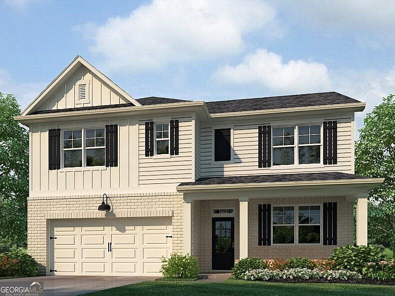 The Holloman Reserve community offers a close proximity to Highway 278 allowing easy access to Highways 78 and 120 and Interstate 20. Plenty of shopping and dining options are present in nearby Hiram, Powder Springs, Austell, and Lithia Springs, and both Wellstar Cobb and Wellstar Douglas hospitals are a quick drive away. This Hayden floorplan home features brick and stone elevations with Cemplank siding. 5 bedrooms and 3 bathrooms with a large great room and flex room. Revwood flooring and crown molding throughout main. Family room features a fireplace. Kitchen boasts exquisitely crafted cabinets with decorative hardware, granite countertops, subway tile backsplash, and stainless-steel appliances. Photos for illustrative purposes only- not of actual home.