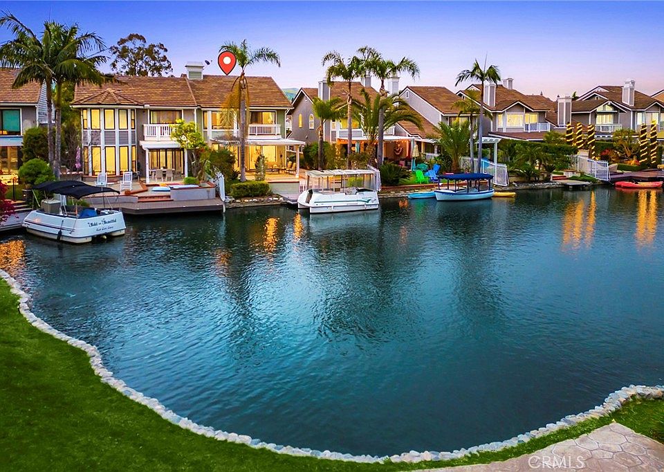 Have you ever image to live on the water, have your own boat dock, live in an amazing upgraded home? Welcome to East Lake Shores, part of East Lake Village. The community of East Lake Village is the best-kept secret in Orange County. Every day feels like a vacation in this delightful community. This wonderful home is light and bright, surrounded by natural beauty—a rarely available floorplan, three bedrooms, and three bathrooms, featuring lakefront living with a bedroom and bathroom on the first floor. As you enter through the gated courtyard and open the front door, you will want to settle in and stay a while. The bed and bathroom downstairs are perfect for overnight guests who wish to stay over during the Holiday Boat Parades. The living room has a beautiful custom fireplace, a bay window that overlooks the patio, and a dining area adjacent to the deck. The kitchen is bright and clean, with plenty of cabinet space, a garden window, and a breakfast nook with a small bistro patio to the side. The primary suite is gigantic, with a balcony that overlooks the lake. You cannot ignore the tranquility and serenity of this retreat-style bedroom. There are three closets: a large walk-in closet, a vanity with double sinks, a walk-in shower, and a large soaking tub. Best of all is a picture window to enjoy the lake view. The third bedroom is cheerful and clean, with a west-facing window and an adjacent bathroom. The backyard has a covered patio with exterior lighting for the perfect indoor/outdoor transition. Enjoy boating, fishing, multiple swimming pools, spas, kayaking, SUP, fitness center, sports court, volleyball and basketball courts, kayaking, BBQ area, walking paths, a park, a boathouse so much more! Creating traditions and memories will be effortless with the community festivities—boat parades on Christmas and July fourth. You will have every reason to celebrate life and a great place to do it. Come live the DREAM of living on the water at East Lake Shores.