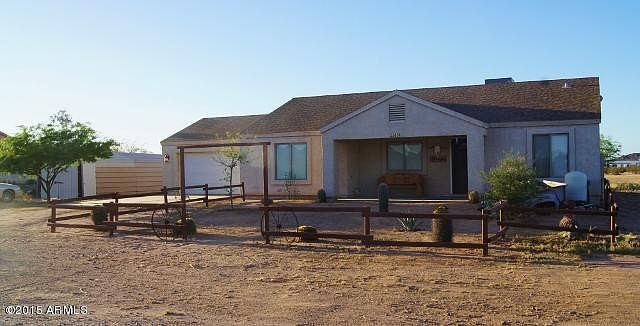 Adorable home, pride of ownership, on an acre & a quarter, horses welcome! Seller has made improvements inside and out. Spa conveys free gratis at COE. Back Yard Gazebo, fenced for pets & kiddies. Mountain views, fine neighbors, room for your toys & pets! List price includes repairs to shared well or new private well, estimate on counter, $20,439.79+ PUMP ETC. Currently hauling water, recently installed Pump plus 1400 gallon underground water storage on property. Community well less than 1 mile away, well key membership $100 annually. Maricopa has a new 5 acre Lake Recreation Park for an annual Membership fee too! Enjoy the rural life plus nearby amenities. Verizon, Satellite TV & Huges Internet available. Property originally sold at $236,000 in 2006. Lots of fresh air, peaceful area.