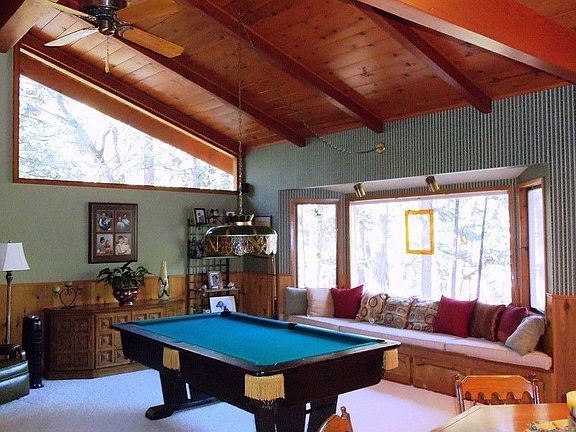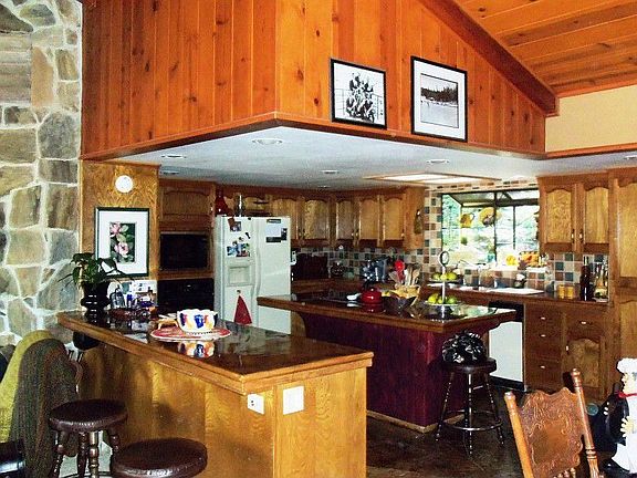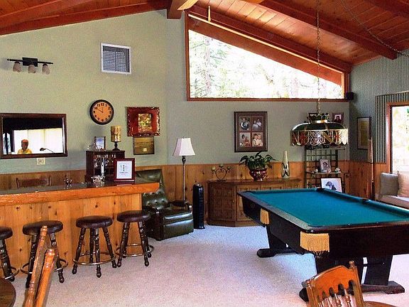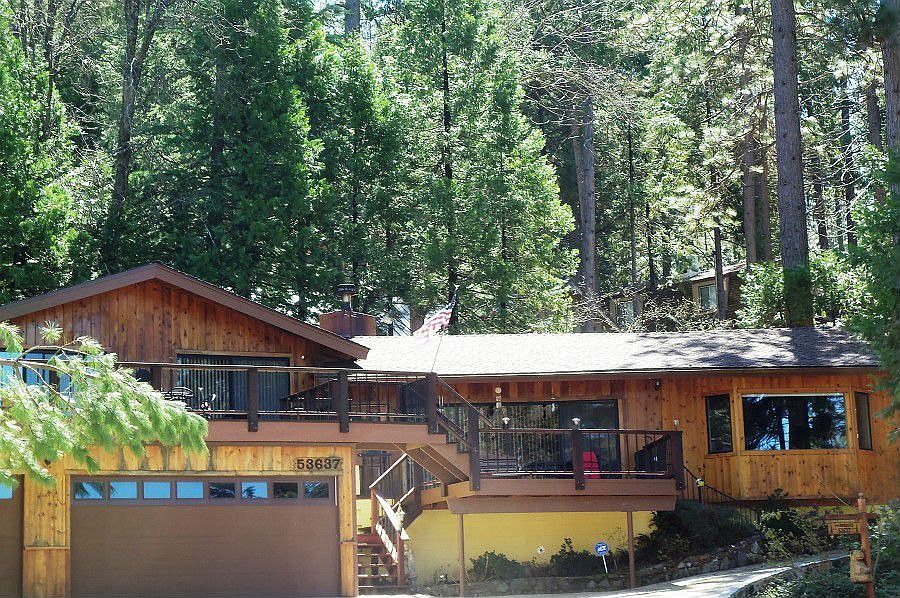 Set on a large corner lot, this cabin has unobstructed lakeviews~ Large great room with wet bar, window seat, and the pool table comes with it~ Beautiful Concrete countertops and floor in kitchen compliments the custom tile work~ Vaulted and open beam ceiling, lots of windows for lots of views~ Multi level decking, RV Carport and plenty of parking plus an oversized garage~ Master bedroom and one guest bedroom have lakeviews. Comes mostly furnished~Boat slip on Acorn completes the Bass Lake experience~