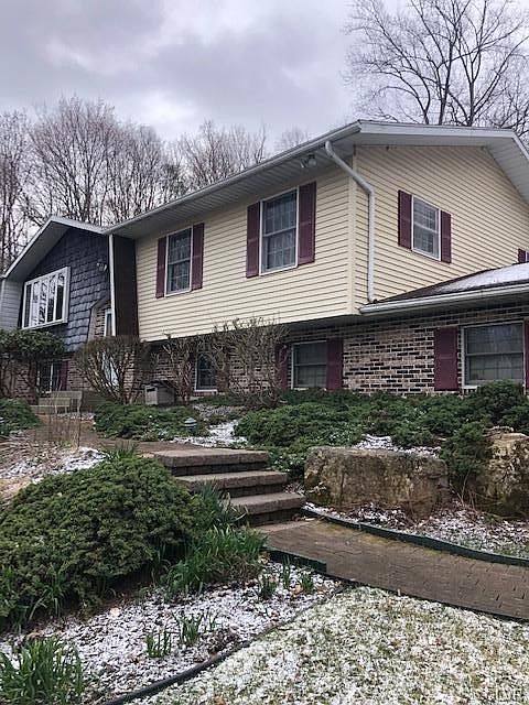 Bi-level with 4 bedrooms & 3 full baths on a 10 acre wooded property. Wood fireplace in lower level family room. Hot tub in lower level full bath. Detached over-sized 2 car garage with second floor walk-up storage area.