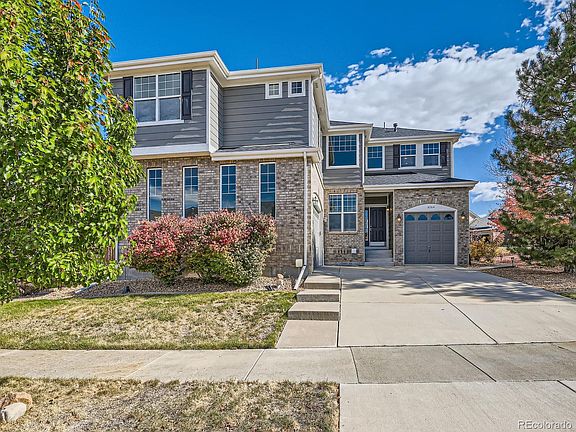 One of the best open layouts in the neighborhood along with high ceilings. Better than new. More room, less money in a desirable neighborhood just a few blocks to Southlands Mall. New paint and trim, giving this home a spectacular finish. Home sits on a quite, huge corner lot facing west towards the mountains and open space. The exterior is finished of brick and wood siding giving the home a lot of character. Only a few blocks to Southlands mall for shopping, dining and great entertainment. Professionally landscaped to allow for minimal water usage. Excellent concrete patio facing east with out the need for any additional shade coverings. As you walk through the front door, you and your guest will be greeted with high ceilings in the foyer and beautiful wood staircase. This 2 story home sits on a quarter acre in the Cherry Creek School District! Custom paint & plantation shutters throughout! Powder room & laundry/mud room with built-in cabinets also on main level! Upstairs master bedroom has large reading nook w/fireplace, ceiling fan, 5pc bathroom w/jetted tub & huge walk-in closet! 3 secondary bedrooms, all w/ceiling fans, share 2 additional bathrooms, including Jack & Jill sinks. Finished basement has huge rec room w/bar area, surround sound, powder room & extra storage space! Enjoy the open space and trails along the side of the home. Close to Appaloosa park & to E470 for easy commute! Very well cared for by homeowner. Brand new furnace and A/C unit.