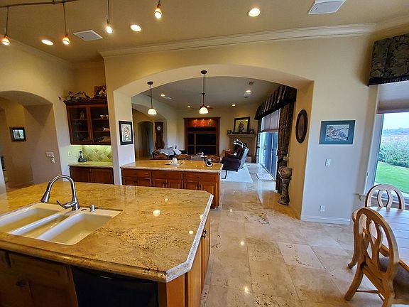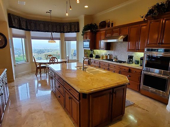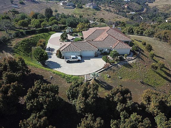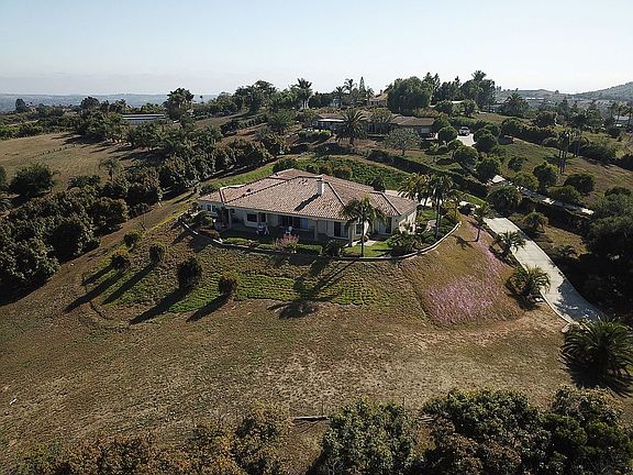 CUSTOM COUNTRY DREAM HOME WITH UNOBSTRUCTED FOREVER VIEWS. As soon as you enter through the double front doors you will see the amazing easterly view; on a clear day all the way to Palm Springs. This is also the view from the large chef’s kitchen and great room, the master bedroom, and one of the other bedrooms. All bedrooms are en suite with their own full bathrooms. This estate home has everything you could dream of. Built using the highest quality materials and workmanship. 11' ceilings in main living areas and master bedroom. 9' ceilings elsewhere. Kitchen features include: 6 burner gas stove, double convection oven, custom cherry cabinets, built-in refrigerator, large island and counter, bay window for the view, granite counter with tile backsplash to the top cabinets. The family room has a built in entertainment center (owner will leave the smart t.v.) large stone fireplace and a 16ft sliding glass door. The master bedroom is in its own wing of the house and features a huge bathroom with granite counters, a soaking tub, separate shower, vanity, double sinks and 2 walk in closets. This home sits on over 3 acres and has lots of avocado trees; the entire property has irrigation. Oversized 4 car finished garage and lots more parking. Home is on natural gas NOT propane. Solar installed in 2020 and oversized for entire house, well pumps, and future pool & spa. Well installed in 2021 and serves entire property including house, landscaping irrigation, and grove irrigation. This home is full of distinctive attributes that you must see to truly appreciate. Call Susan Custer 760-672-1954 for more info.