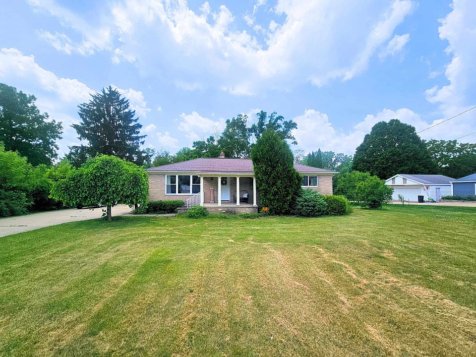Multiple offers. Highest and best by Sunday, 6-22-2025 by 5:00 p.m.. Solid brick ranch with 3 - 4 bedrooms. 4th bedroom was converted to a large 1st floor laundry with a pantry but could be easily converted back to a 4th bedroom. This home features coved ceilings, neutral decor, 1.5 baths, hardwood floors under the carpeting, over sized bedrooms, built-ins and located on almost 2 acres that backs up to the River. Close to everything yet deer, turkey, Pileated woodpecker and more travel through this property. New 96% efficient furnace and central air, water softener with reverse osmosis in the kitchen and fresh paint are just some of the updates! Full size basement can be turned into anything you desire and add so much more space to this home!