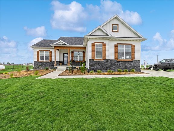 Discover the allure of rural luxury just a short 20-minute drive from Des Moines. This custom ranch acreage is nestled on a pristine one-acre parcel, offers stunning panoramic views. Step into the spacious living room, featuring cathedral ceilings adorned with hand-crafted post and beam details made form knotty Alder. The fireplace, enveloped in Chicago brick veneer, flanked with custom built-ins, creating a cozy yet sophisticated ambiance. Amish-built custom cabinets grace the kitchen and bathrooms, while the kitchen island boasts a striking blue matte finish. Quartz countertops adorn the home with the eat-in kitchen area. The master bathroom is a sanctuary with pattern deco tile, dual private closest, and modern fixtures. Work from home seamlessly with high-speed fiber internet. Step outside onto the covered back porch and enjoy the expansive back yard with fencing. Conveniently located just one mile east of Baxter on HWY-F17, this home is the perfect blend of luxury, comfort, and rural charm. Schedule your showing today!
