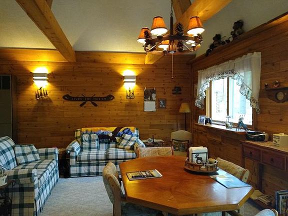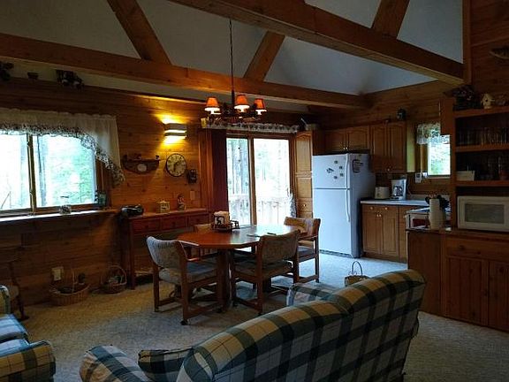 If you are looking for a cute year-round getaway on the Eagle River Chain of Lakes, here it is! It features 2BR/1BA with a loft and there is a dryer included on first floor. It has a handy kitchen which has everything you need. Furnishings are included. Front deck and wooded lot on the river with a few stairs and pier. Great fishing area and access to the entire Eagle River Chain of 28 lakes. The garage is 28 x 24 with a drive thru door on the backside. This quaint and cozy home is year-round and would be a great location for snowmobiling too. Just a few minutes to all the conveniences of Eagle River. Just bring some clothes, your toothbrush and you are ready to start living the Northwoods' lifestyle!