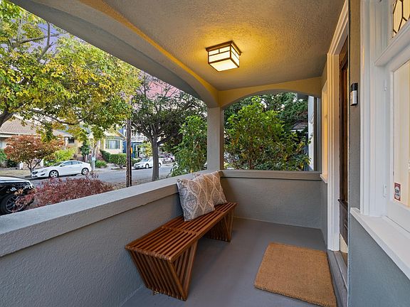 Wonderfully located in the heart of Rockridge, this 3BD/2BA is a true Craftsman gem that captivates with its classic artistry, serene gardens, and lively urban setting. The 1281 SQFT home welcomes you with an English garden and a friendly covered porch displaying some of the home’s extraordinary leaded and custom stained glass windows. Step inside and take in the architectural details with Victorian Art Nouveau touches: unique vintage windows, a statement fireplace, arched doorways, and bench window seating. Two sunny bedrooms share a full bath, and the bright primary bedroom boasts ample closet space, a bay window overlooking the backyard, and adjacent full bath. The kitchen features a vintage stove, recessed lighting, and access to the backyard. Surrounded by flowering vines on trellises and mature trees, a spacious deck allows you to relax outside with your morning coffee or dine al fresco with friends, while the grassy yard is perfect for playtime or lounging in the sun. The finished garage offers an additional space ready as an office, artist's studio, or guest space. A long tandem driveway completes the property. Shopping, dining, and BART are blocks away. Zoned for A+ Chabot Elementary, Claremont Middle, and Oak Tech High (currently per OUSD).