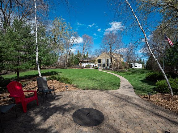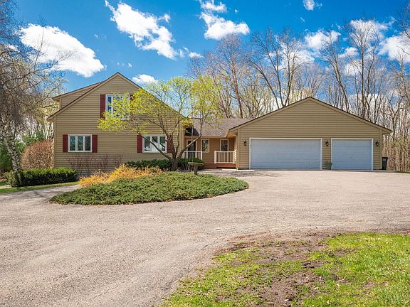 Inviting living spaces, sought-after pole shed and beautiful 3-acre setting! Impressive 30x20 great room with fireplace and wall of windows! Gorgeous private oasis features expansive patio, new decks, Gazebo, built in firepit and paver area! Retreat at the end of the day to your private suite on its own level, featuring vaults, private bathroom, jetted tub, separate shower. Inviting dining and living rooms, two bedrooms, two baths, laundry on main level. Spacious kitchen offers granite counters, breakfast bar and eat-in area. Lower level home office, Two large unfinished areas, fourth bath, impressive Sauna in like-new condition. Pole shed has it all! Heated, concrete floor, water source, plumbed for air, tall doors, separate access to large third stall, metal roof/siding. Home is on Paved road. Nearby trails, lakes, restaurants and more!