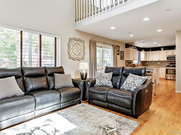 This beauty truly shows like a model home! Wonderful bright open floor plan with soaring ceilings, large clerestory windows that let the natural light flood in from the Southern orientation, and beautiful hardwood floors that span the main level. As you enter, you're greeted by the living room that showcases a gas fireplace with plenty of space to entertain friends and family. The adjacent dining area sits next to the large updated kitchen with beautiful slab granite countertops, mosaic tile backsplash, and lots of cabinet space for storage. Newer stainless steel appliances, and even a window over the kitchen sink to watch the kids play outside. The back yard is a fabulous space to enjoy year round, with a big maple tree for plenty of shade, a fully fenced lot with sprinkler system, and a huge beautiful stone patio for relaxing outdoors. Head back inside and upstairs you'll find a wonderfully light and bright loft area that offers lots of possibilities from a hobby space or kids' play room, to a home office or 2nd family room. The primary suite is a great sanctuary with warm paint colors and vaulted ceilings, windows among the treetops, and a full private bathroom. Down the hall are two more spacious bedrooms and another full bath, along with plenty of storage in the linen closet. The basement is another perfect flex space for a home office, 4th bedroom, or another family room. There is a 3/4 bathroom with shower, and a full egress window. Perfect unfinished storage area for all the extras too. This home has all new fresh exterior paint, and is located on a great block that is close to everything Highlands Ranch has to offer. Don't pass this one up...it's a fantastic home at an incredible value that is ready NOW for its new lucky owner who is looking for a great place to settle down and enjoy life in Colorado!