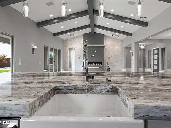 Super contemporary house with 275K+ in custom upgrades on 1/3 acre in a gated community. Gas Fireplace and Platform with LED Lights, Backlit marble counters and imported crystal sinks in master and bath. Backlit shower tile in secondary baths. Huge marble waterfall island, Marble backsplash in kitchen, powder room with waterfall counter and onyx sink. Huge stacked stone marble wall in family room, Custom LED ceiling lighting in study and living room, Custom European toilets, Custom lighting galore throughout whole home. Whole house speaker system including speakers in garage and on back patio. Owner/Agent Turf and paver back patio are brand new. Brand new Epoxy garage floor. Home is custom fit with electrostatic air filters and UV light for super clean air. Whole house water filter with water softener. RO water system. Contemporary shiny black rocks leading to front door. Corner Lot. Mirrors on platform wall and TV in Master Bath convey. Professional pictures to come.