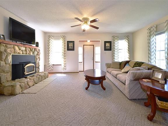 Nestled upon a sprawling 5.3 acre part wooded lot with a private pond, this terrific 3+ bed/3 bath ranch residence is guaranteed to impress! The inviting open floor plan welcomes you with an oversized living room featuring a toasty wood burning fireplace that will keep everyone warm on chilly nights. The space flows naturally into the adjacent dining room where a long breakfast bar connects to the bright kitchen with ample custom cabinetry, stainless appliances & a walk-out to the part covered deck & large privacy fenced patio. The main floor laundry is a nice feature. Retire in true comfort to the generously sized master suite with a walk-in closet & private full bath. The expansive finished walk-out adds a central family room with sliding glass walk-out, den, bonus room, workshop & the 3rd full bath. Two of these rooms could be used as 4th and 5th bedroom. You will love living in the middle of these wide open spaces! 2-10 Year Home warranty provided! No show till Sat. 4/20.