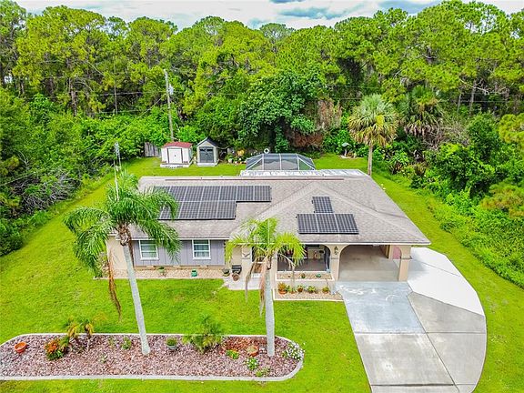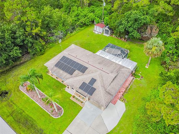 **BRING YOUR BOAT AND RV!** Beautiful well maintained 3/2 home located on just shy of 1/2 an acre! Wooded lot next door is included in parcel and purchase. Lots of room to stretch out and watch the sunset from your lanai! Lanai also is already set up for a hot tub! Home has solar panels to enjoy the green benefits as well as a remodeled custom kitchen 2020 including quartz counter tops. New laminate flooring 2020. Plenty of room to garden! Window treatments convey and some furniture is available to convey as well. Home is nestled in the quaint Gulf Cove community and is close to boat ramps, golf courses and shopping! Enjoy walks by the water, playground and picnic tables at nearby community Gulf Cove Park. Private boat ramp is available with yearly fee. Home is turn key ready - this hidden gem won't last long!