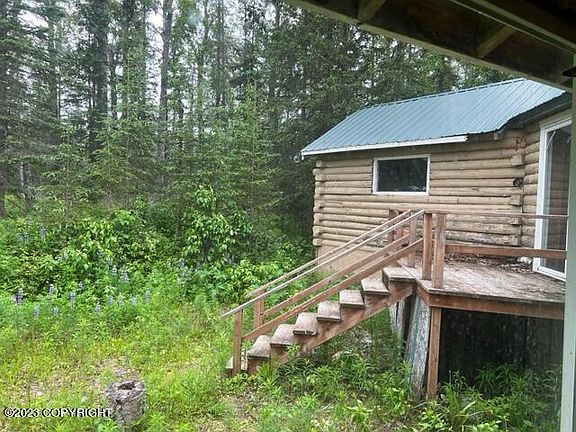 Log home, on almost 2 acres! With loft, use as an office, playroom, or bonus room. 3 bedrooms, 1 full bath, living room, kitchen, dining area. Metal roof. 1.82 acres in an up and coming nicely maintained neighborhood. Gravel driveway in place. Borough maintained, gravel road.This house is being sold As Is, Where Is, no warranties or guarantees.Well, septic, electric, and gas on site.Inspection report available upon request.