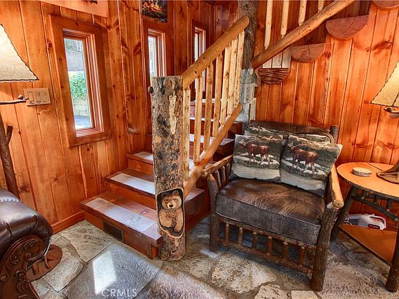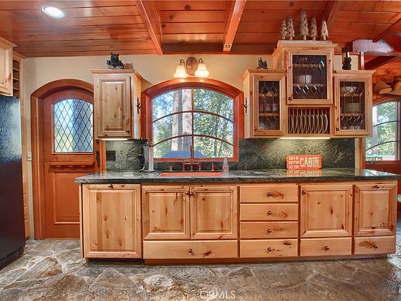 Charming, Warm and inviting Bass Lake Mountain Cabin with lake views and and a boat slip on Acorn Dock. Updated in 2008, slate flooring granite countertops, custom cabinetry, replica antique stove, stained glass windows, custom copper sinks, custom carvings in railings exterior deck for outdoor entertaining or relaxing. Main level has living and dining area, kitchen with kitchen island, custom windows, Split kitchen door, lots of cabinetry, 2 bedrooms 1 bathroom, laundry closet. Upper level, large open loft with master bathroom includes soaking tub and custom rock work and a private balcony. Wrap around deck for outdoor entertaining, lower yard partially fenced, large lot offers options too!