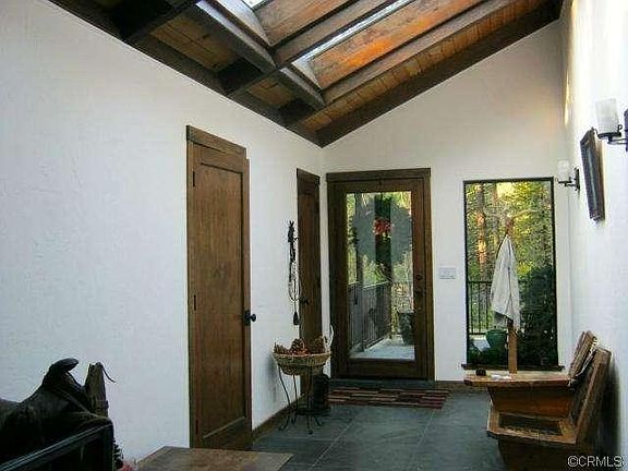 Updated Bass Lake home with granite counter tops, commercial stove, stainless sink, custom cabinets, built in desk area, heated floors on the main level, trex like decking and more. Vaulted ceilings, master suite is on upper level offering privacy, vaulted ceilings, heated bathroom floor. Entry level has one bedroom and laundry areas, second level has two bedrooms and a full bath, main level has living room, kitchen, 1/2 bath and upper level is the master suite. Property borders forest service land and has a fenced yard, patio off main level offers plenty of room for outdoor entertaining.