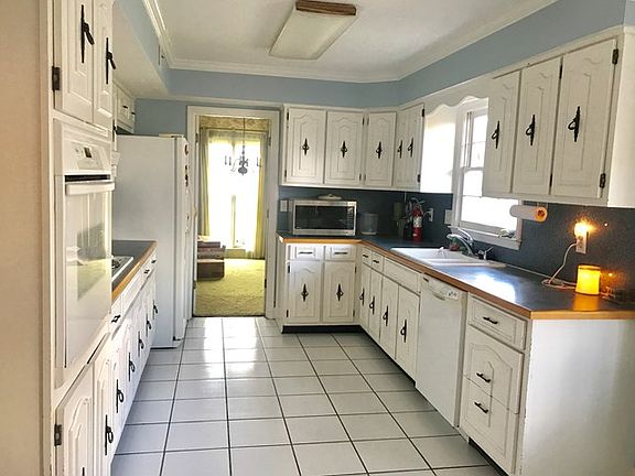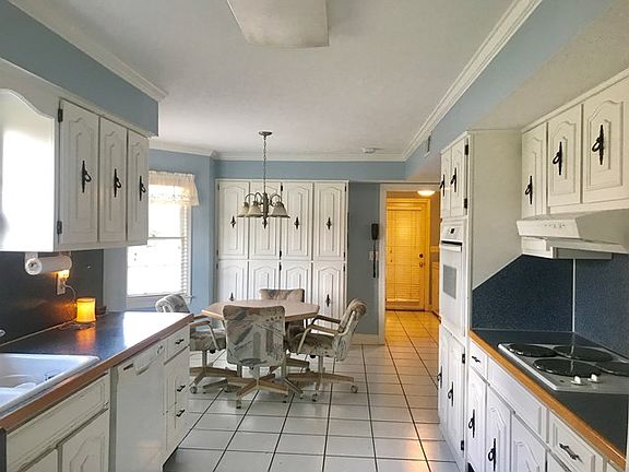 This custom built brick home features wide entry foyer with double door entry and wide entry openings to flex space. Lots of built-ins and crown molding through out. Ceramic tiled kitchen offers lots of cabinet space with eat-in breakfast area with bay window plus built-ins. Large laundry room and pantry closet off carport with kitchen entry. Wood burning masonry fireplace in great room with wood built-in cabinetry and shelves. 3 gigantic bedrooms with lots of closet space. Exterior door in