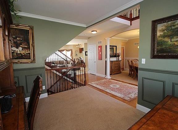 Welcome to this completely gorgeous over 3,000 sq ft home. Seller has put over 90,000 in builders options and tons of their own. Professionally landscaped yard, brick mailbox and upgraded brick elevation. 2 story foyer entryway accesses dining room, den & large family room w/gas fireplace, built in bookshelves, bay window. Gourmet kitchen w/upgraded 42 cabinets, tile back splash, center island, wine rack, double oven, stainless steel appliances, butlers pantry, bay window & mudroom. Wrought iron staircase leads you upstairs to loft area w/upstairs laundry room. Huge MB suite w/sitting area & built in bookshelves. MB bath is gorgeous w/ custom tile surround, double vanity & huge walk in closet. Two additional good size bedrooms w/full bath. Custom window treatments throughout. Basement has theatre room & additional room studded ready to be finished and storage. Back yard is fenced w/gorgeous brick patio, built in fire pit, gas & charcoal grill & fountain and a sprinkler system!