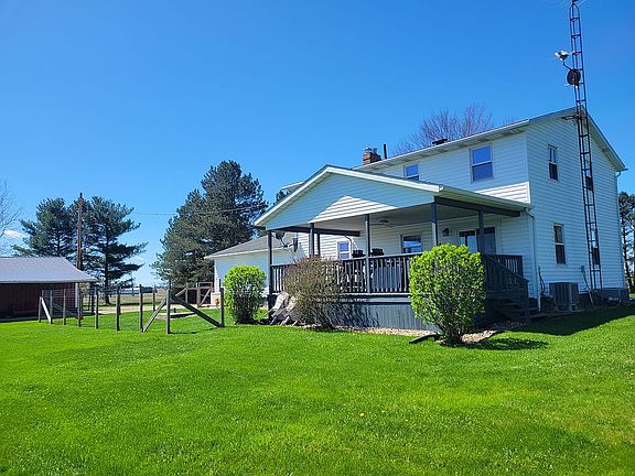 Beautifully updated 2-story Colonial home situated on 2.5 private acres in the country with a stocked pond and 24'x20' pole barn with concrete floor, electric and new metal roof. Each story has it's own heating and cooling units to keep everyone comfortable. With a spacious kitchen and large formal dining room, hosting dinners is a breeze. During the colder months, enjoy the warmth of the wood burning fireplace in the living room or the new coal pellet stove in the living space of the basement. Updates include: Culligan water system (owned), vinyl siding, shutters, Generac home generator, propane furnace, water heater, kitchen & bathroom countertops, sinks/faucets/mirrors in bathrooms, refrigerator, interior/exterior light fixtures, cabinet hardware, carpet, laminate flooring, gutters/downspouts on front porch, gutter guard on back of house and fresh paint throughout.
