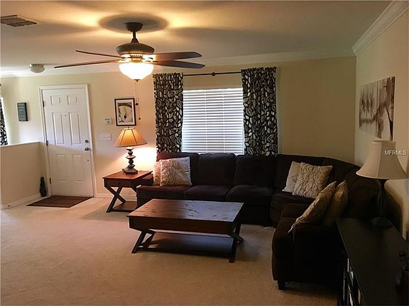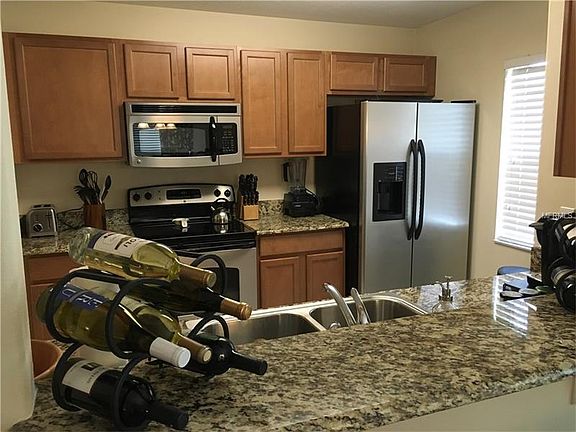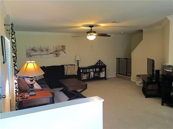Beautiful 3 bedroom, 2 and 1 half bath condo in convenient Cobblestone Landing. The ground floor features a spacious, open living area with lots of upgrades, including hardwood floors in the dining area and crown molding throughout. The kitchen boasts granite countertops, stainless steel appliances, a pantry and a large pass-through window to the dining room. A sliding glass door leads to a patio with ample space for grilling. A convenient half bath finishes off the first floor. Upstairs the master bedroom features a private bath with garden tub and walk-in closet. Two more bright bedrooms share another full guest bath. A large closet in the hallway holds your side-by-side washer and dryer. Well-maintained, one-owner home. New air handler in 2015. Gated community, maintenance-free, with beautifully maintained community pool. Easy access to I-4, shopping and dining.