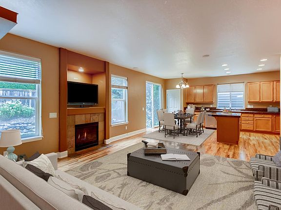 Stunning turnkey home with 5 bedrooms, 3 baths, and 2,590 square feet in Tualatin! Situated on a quiet residential street with a well-maintained front yard, covered porch, and lots of character. Large open floorplan with luxury laminate wood flooring throughout the main floor. Welcoming you inside is a charming entry with built-in coat hooks and a large living/dining room with large windows and plantation shutters. The beautiful open kitchen overlooks the family room, creating the perfect setup for entertaining, and includes a center island, granite countertops and backsplash, lots of cabinet space, stainless-steel appliances, and a separate sizeable pantry. The family room is warm and inviting with a cozy gas fireplace and lovely backyard views. Rounding out the first floor is a full guest bath and home office or possible 6th bedroom. Five bedrooms are located upstairs and include brand new plush carpet flooring, ceiling fans, and great closet space, with three of the rooms including walk-in closets. The master is generously sized with an en suite bath featuring a dual vanity, separate shower, large walk-in closet, and a luxurious soaker tub. The spacious backyard is very private with colorful flowers and a large patio great four outdoor dining. Two-car garage. Fantastic neighborhood near schools, Canal Acres Nature Park, hospital, shopping & dining, and with easy access to I-5 and 205. Don’t miss the chance to own this fabulous home! Schedule a showing with REX today.