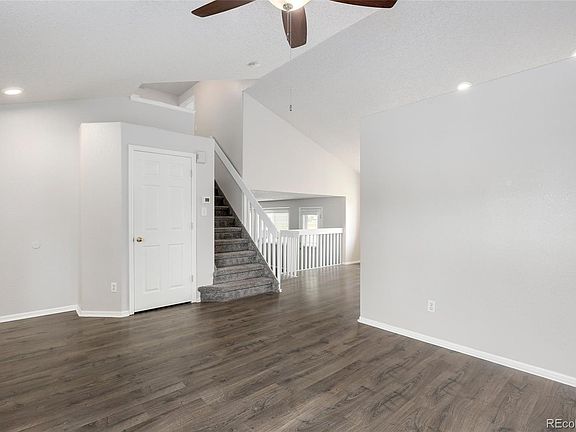 Don't miss this updated home in the quiet Woodbridge Station neighborhood. Natural light and space about in this gorgeous home and are accented by fresh neutral paint, new wood laminate floors and new carpet. A formal living room with vaulted ceilings leads you into the heart of the home where a beautiful, updated kitchen awaits you. The well-appointed kitchen boasts new quartz countertops, freshly painted cabinetry, stainless steel appliances, and pantry. Easily host guests in the large family room that leads out to the covered patio, where you can dine alfresco, or soak up some sun shine in the fenced backyard. Walk upstairs to the master suite that delights with a vaulted ceiling, walk-in closet and updated en-suite bathroom. Upper level is completed by 2 secondary bedrooms and a full guest bathroom. The finished basement offers great additional living space with a large bonus room with cozy fireplace and an additional 3/4 bathroom, prefect for a movie room or private guest quarters. Great location just 1/2 mile to Trail Winds Park and Open Space and Eagleview Elementary School. Nearby walking and bike trail lead to Veterans Memorial Aquatics Center and Marshall Lake Park.
