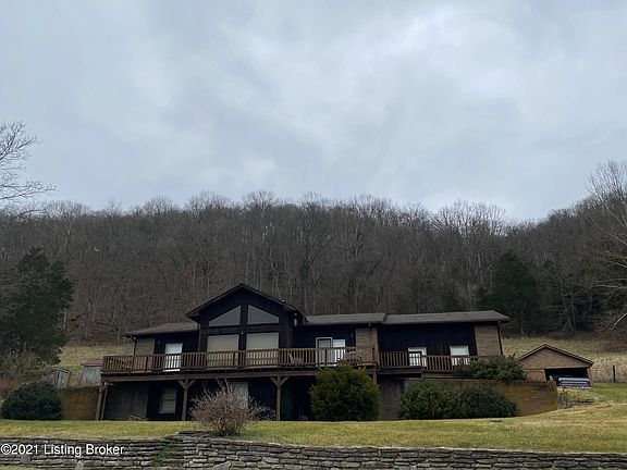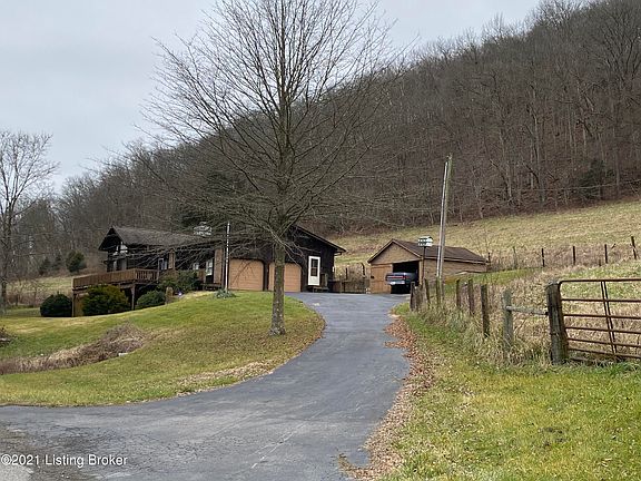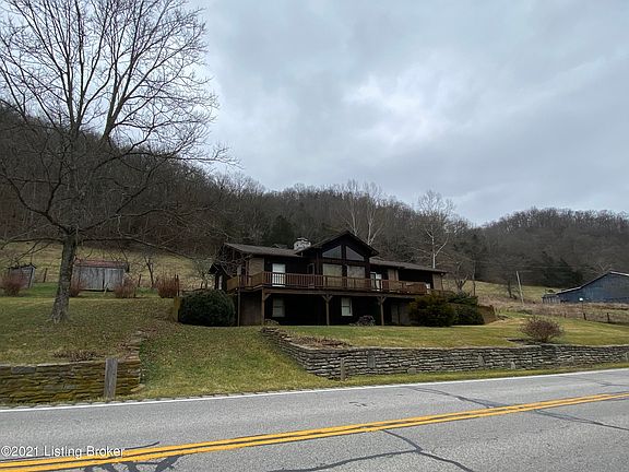 This ranch home consists of over 1700 sq ft with 3 bedrooms and 2 full baths. Additional full bathroom is operational but unfinished in the unfinished walkout basement. Large front wrap around porch is accessible from living room and master bedroom. Living room has fireplace. Cleaning made easy with whole home central vacuum system. First floor laundry. Handicap accessible tub in hall bath. The farm is approx. 153 acres (more or less) with barns, outbuildings, and silo. Land lays on both sides of the highway and boarders the Little Ky River. Acreage is a combination of tillable, pasture, wooded, and recreational land. Ample parking up the paved driveway with 2 car attached garage and detached 1 car garage.