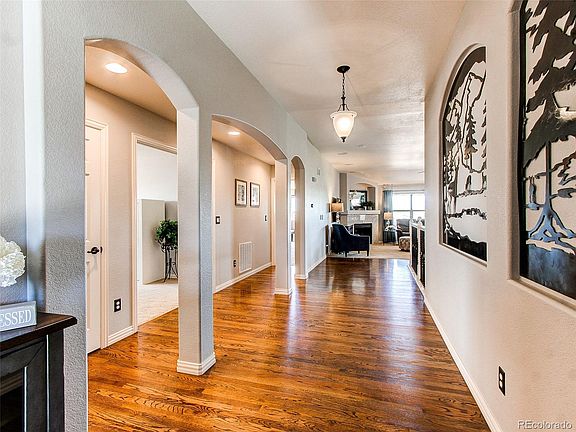You will appreciate this impressive, turn-key, ranch style home that boasts an abundance of natural light, open-floor-plan, a 3-car garage, new interior/exterior paint, newer roof and located in the thriving Tollgate Crossing community! The stylish gourmet kitchen features gleaming hardwood flooring, plenty of cabinetry, luxurious granite counter-tops, a pantry, a large island, stainless steel appliances, and flows into the inviting family room complete with a cozy fireplace! The spacious master suite offers a private 5-piece bath and generous sized walk-in closet. Two additional bedrooms (or office), a full bath, laundry room and convenient office/study complete the main level. The full, walk-out basement is perfect for additional storage or ready for your finishing touches. Outside you will enjoy an incredible oversized, covered deck perfect for entertaining, open space views and a yard spacious enough for gardening, a dog run, fire pit, etc. The welcoming neighborhood offers walking trails, parks, pool, clubhouse, and close to Buffalo Trail Elementary school. Perfect location with quick and easy access to E-470, DIA, and is just a short 10 minute bike ride or a 5 minute drive to the Southlands with plenty of restaurants and shopping! Check out the 3D walking tour! A Must-See!