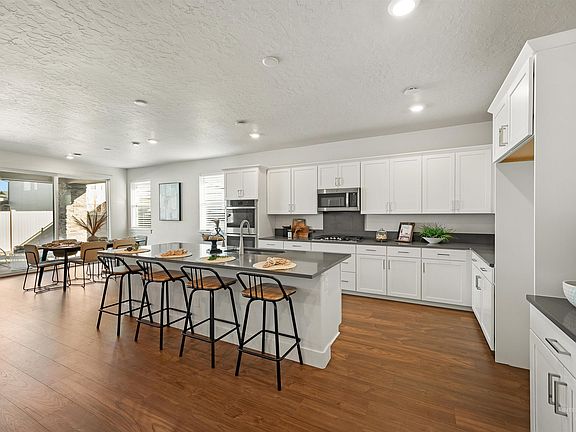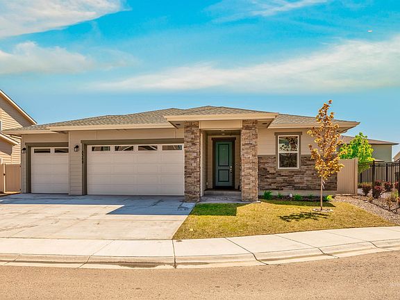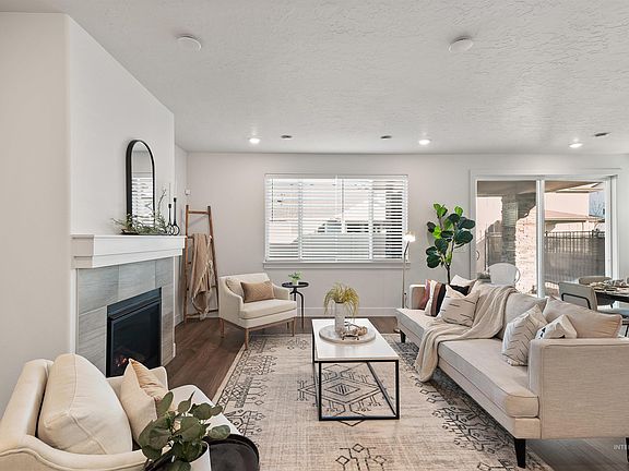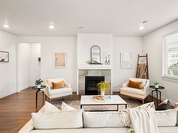 Sleek and modern 4 bedroom single level with split bedroom design. Open floor plan with no carpet. LVP flooring throughout. Kitchen features white cabinets, quartz countertops, island/breakfast bar, stainless steel appliances with double ovens, gas cooktop and pantry. Primary suite features dual sinks, quartz counters, tiled shower and floors and walk in closet. Many features like gas fireplace, built ins, dual sinks and quartz counters in 2nd bathroom. Finished 3 car garage with epoxy floors and water softener. Exterior has east facing back yard, covered patio, full fencing and pressurized irrigation sprinklers. Easy freeway access, close to restaurants and more.