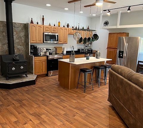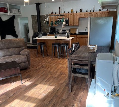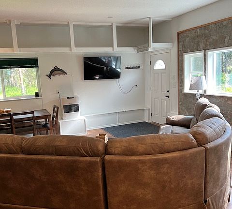 Indulge in the modern charm of your newly built retreat. The open-layout living, dining, and kitchen areas create an inviting space for shared moments. Relax in the comfort of 1 King bed, 1 Queen, and a pull out memory foam couch bed (full) and the master bedroom features a king bed, and bathroom. Flat Screen T.V's located in the living area and the master bedroom. Nestled in Kasilof, this delightful house is the perfect getaway for 6 guests seeking a quaint and fabulous vacation experience. Let your great Alaskan Fishing adventures begin! Welcome to the Kasilof Alaska Fishing oasis, minutes from fishing the Kasilof River and Crooked Creek Sate Recreation Site/RV Park. World class Salmon fishing at its finest. Only 13 miles to Soldotna and 19 miles to Kenai. Kasilof has some of the finest Salmon fishing in the world. Want the best of both worlds? Drive 15 miles to the Kenai River to enjoys more great fishing. Owner pays ALL utilities. Garbage cans provided outside but the tenant will need to take their own trash to the dump which is less than a couple miles from the home. Lease terms: 3 month, 6 month, or 12 month lease available.