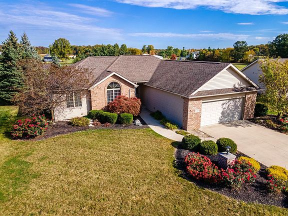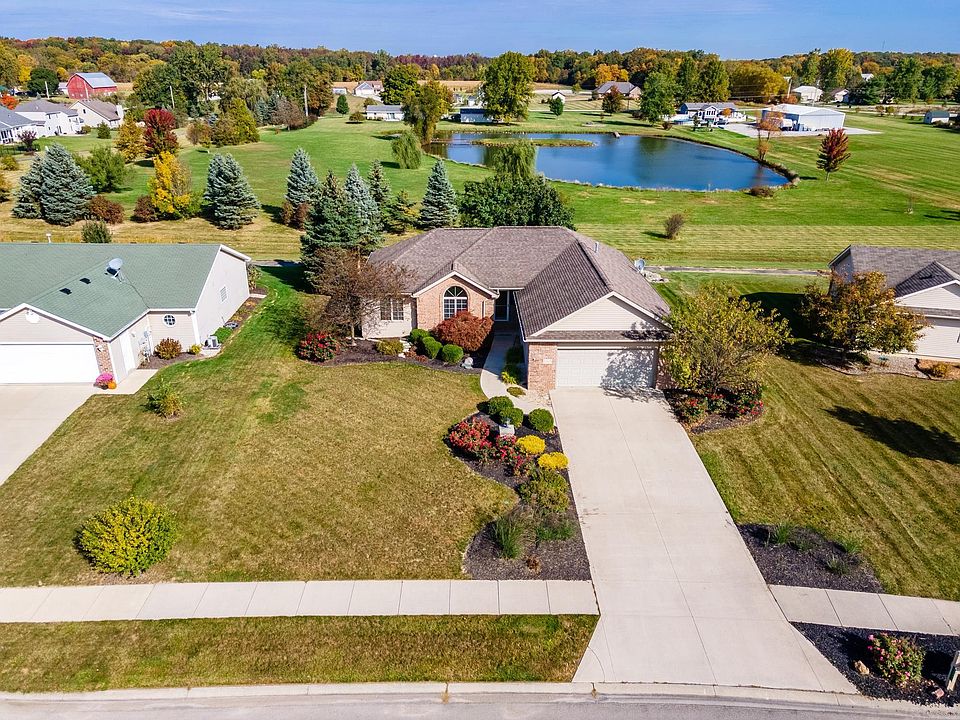 WOW! An incredible home with beautiful views!! This 2,996 sq ft ranch on a finished basement does not disappoint! Through the foyer entry you’ll find a spacious great room, boasting with natural light through tall windows, trey ceilings and a gas log fireplace with wooden mantel. Shared with the living space is an eat-in dinette and sliding patio door with picturesque pond views. Enjoy morning coffee on the 16x14 composite deck or hop on the nearby walking trial! The kitchen features a breakfast bar with custom cabinetry, brushed nickel hardware, newer stainless LG appliances, new sink, and faucet. The laundry room is conveniently located near the garage and has a utility sink with storage! The newer HE washer and dryer stay too. 3 bedrooms are found at the other side of the home. Bedrooms 2 and 3 have large windows and spacious closets with beautiful French doors. The primary has a generous walk-in closet and offers an en suite bathroom, competed with a dual sink vanity, jetted garden tub, walk-in shower, linen closet, and transom window. The finished basement really sets this home apart, with so much room for activities! Host your next party at the wet bar, watch a game or throw darts in either of the rec spaces! The basement features a 4th bedroom and full bathroom, making it the perfect guest quarters. This home sits comfortably on a .3 acre lot. Close to I69 and shopping, but offers a scenic country feel. This is the house you don’t want to miss. Schedule your private walkthrough today!