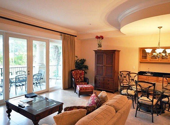 Walk to the beach from this beautifully furnished 3 bedroom, 3 bath golf course front condominium. This property features a 1 car garage, granite counter tops, travertine floors, wet bar, huge private balcony and a community pool. The Master's bath has a jetted tub and separate shower. Another great feature to this unit is the large closets! Amenities included with the lease of this home are daily kayak, bike and boogie board rentals at no cost. Daily tennis court time, fitness club access (with spa and steam rooms), access to the resort's three pools, and discounts on gulf and beach set-ups. This is in addition to any amenities specific to this property's neighborhood and is an exclusive offering with this listing.