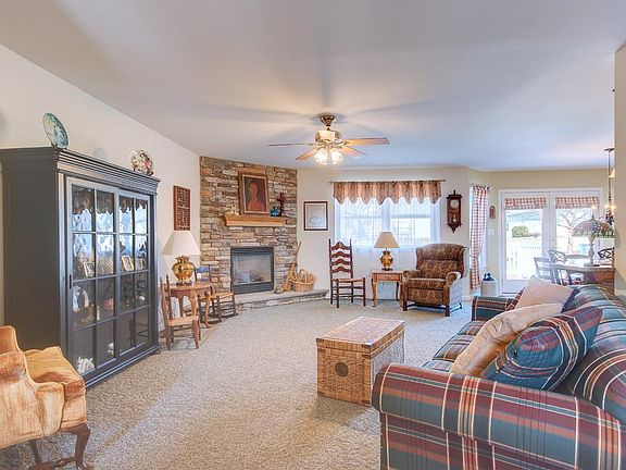 This attractive East Penn ranch home boasts three bedrooms, two full baths, spacious eat-in kitchen, living room with gas fireplace, and dining room. Kitchen provides ample cabinet and prep space, a large pantry, peninsula with seating, and eat-in area. Living room has beautiful gas fireplace with stone surround and wood mantle. Dining room offers enough space to entertain a party of eight. Spacious master suite with walk-in closet and full bathroom with custom accessible shower insert and double vanity. Two additional bedrooms - one has been converted into a den, but built ins can be easily removed to utilize original closet. Second full bathroom with glass door shower and single vanity. Trex deck overlooks well-landscaped backyard and covered front porch provides additional outdoor living space. Full unfinished basement with Bilco door -- potential to become an additional floor of finished space! Don't miss the chance to make this house into your home!