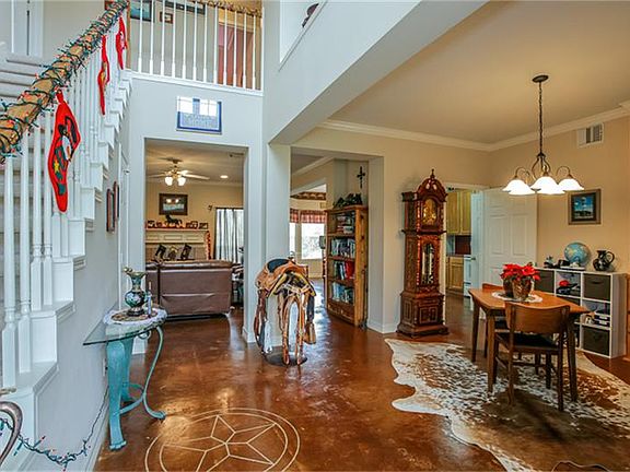 Beautiful home on 6 acres. This 4 bedroom, 3.5 bath, 2 car detached garage home is just far enough from town to get rid of the noise, yet convenient to area amenities. The home features a formal dining room, open floor plan, stained concrete floors, spacious master bedroom and great natural lighting! Upstairs you will find three nice sized bedrooms and two full baths.The 6 acres is fenced and cross-fenced for horses or other animals and has a small shelter area.