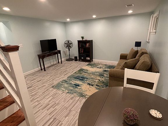Clean, modern and bright, newly renovated furnished basement apartment for rent near The Fields at RFK in Northeast DC. Includes a parking space, cable,WiFi and all utilities. 475 square feet of living space includes bedroom, living room, bathroom, laundry facilities (washer & dryer) and kitchenette. Separate entrance from main house and steps to golf course, major transportation corridor, sports complex (The Fields at RFK), community center with library and swimming pool. Free streetcar (H Street corridor), convenient (10 min walk) to grocery stores (Safeway & Aldi), shops, restaurants and other amenities. Twelve minute walk to Stadium Armory Metro. Furniture includes queen bed, two dressers, bookcase, flat screen TV, Sleeper sofa (pulls out into a queen bed), dining table & chairs, end tables, lamp, microwave, small refrigerator, and hot plate. State of the art alarm system & exterior cameras. No smokers or vape. Pets negotiable. Landlord lives in upstairs unit. Owner pays all utilities: water, gas, electric, WiFi and basic cable. One year lease. First month's rent plus security deposit of $1600 due at onset of lease. Pets are negotiable, but no cats or smokers/vape due to landlord allergies. Pets contingent on ability to get along with small dog in upper unit. Pet fee of $200 up front, or monthly payment of $25. Tenant responsible for picking up after their dog and assisting with clearing snow from sidewalk as needed. Parking space in backyard included.