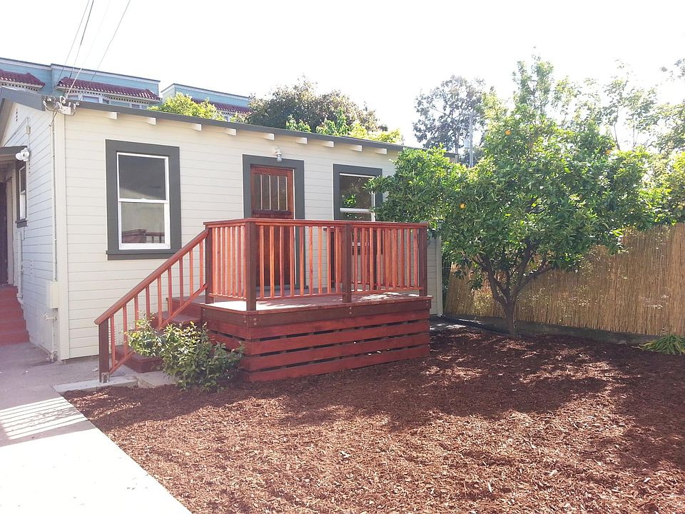 Stand alone, charming, two bedroom bungalow for rent, two blocks from MacArthur Bart with one off-street parking space. House has mainly hardwood floors and one bedroom with new carpet. It has been completely repainted and has appliances, including dishwasher, washer, dryer, refrigerator, gas stove and microwave. The kitchen has new cabinets, countertop and sink. The house also has dual pane windows and nice deck off the front. There is a large yard that offers great fruit trees, garden space and lots of sunlight. Pets negotiable. The Temescal location is a thriving community with a lot going on. There are great restaurants, cafes, shops and a weekly farmers market within easy walking distance. Freeway access to Highway 24, Interstates 80, 580 and 880 are around the corner. UC Berkeley is a short bus ride away or easy bike ride. San Francisco and downtown Oakland are easily reached via public transportation or via car. We're a friendly neighborhood on a friendly street. Please email with any questions. Please reply to this listing if you are interested. Owner pays garbage. No smoking allowed. Pets negotiable.