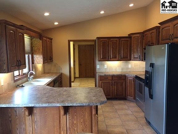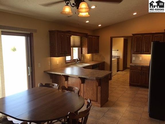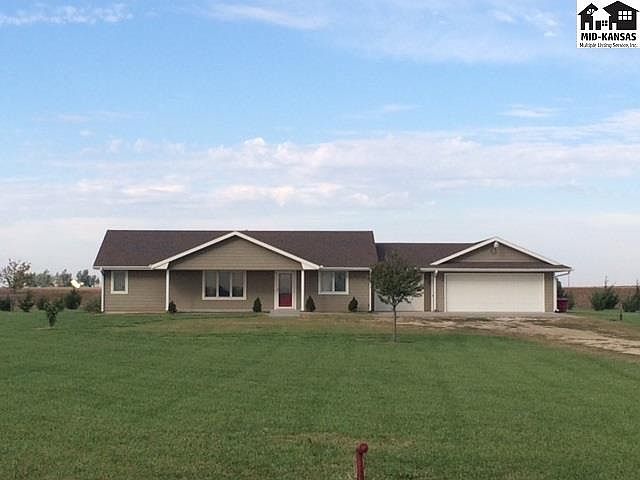 A gorgeous Goertzen built home that sits on 5 acres. This beautiful home was built in 2008 and has many custom features including no step entry and gorgeous cabinets and woodwork throughout. When you walk in the front door you will be impress with the high ceilings and the nice open living spaces that the living and dining room offer. Kitchen is large with pull out drawers, under cabinet lighting and beautiful appliances. The master bedroom has a attached bathroom with walk in-closet and is conveniently located off the laundry room. 2 additional bedrooms and 1 full bath complete the main level. The basement is unfinished but is ready for family room, 2 bedrooms and is plumbed for a full bath. Basement has large concrete storm room for extra storage and safety. The 3 car garage is oversized and has hardy-board siding for the interior walls. Home has over 2280 sq. ft. and is very efficient with Weststar energy and rural water. It sits off the blacktop and is conveniently located close to McPherson, Inman and Hutchinson. Call for your own showing to take a look for yourself.