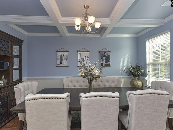 Beautiful four bedroom, two & ½ bath home has incredible floorplan & conveniently located to Lexington & I-20. Large foyer accentuates arched entry to formal dining with coffered ceiling. Great room is spacious & open to breakfast area, island & kitchen, perfect for entertaining! Kitchen includes stained cabinets, granite counter tops, pantry, stainless steel appliances w/adjoining bonus room that could be private office, pet/hobby/sewing room or x-large storage space. Very large master has en suite w/separate tub & shower, double vanities & walk-in closet w/his & her space. Upstairs also includes 3 bedrooms w/generous closet space & shared bath. Laundry access from hall & master, finished floors in garage, crown molding downstairs, tankless water heater, attic access, drive-through gate , energy efficient, x-large driveway are some added features of this lovely home. Neighborhood perks include community pool, tree-lined entry, sidewalks & fishing pond.
