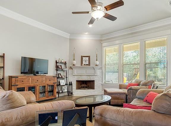 The very best location in Bedico Creek. Across from the Audobon Way & backing up to green space! Flood zone C & $2000 TOWARDS BUYER'S CLOSING COSTS! This lovely home is less than 3 yrs old. Wood blinds, Triple Crown molding also above each window in living area, architecturally coffered ceiling in open dinning room, & quartz stone fireplace w wood mantle, large covered back porch wired for TV w/ gas connection & fenced yard. Gated Subdivision w 20+ acres of Lakes & Water Features, 200 acres of parks & more.
