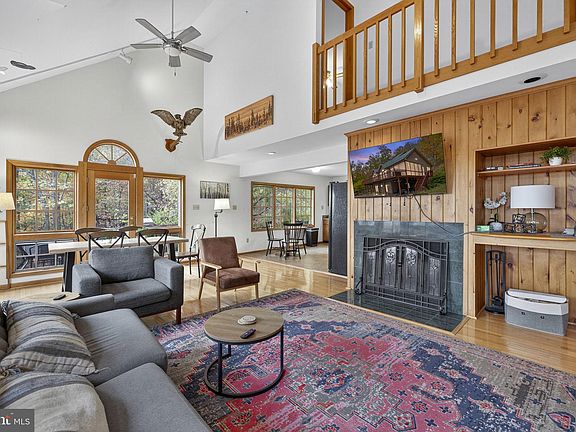 Stunning, newly-renovated five-bedroom chalet cabin with serene mountain views, surrounded by acres of trees, and on one of the most coveted lots in Coolfont. Features high ceilings, huge windows, beautiful woodwork, a wood-burning fireplace, an open kitchen and dining area, wraparound deck, screened-in porch, and bright, airy living space. Professionally designed with all new furniture, modern decor, and hot tub. Seller spent over $70,000 furnishing & upgrading the property. As a vacation rental it has generated $227,000 over the past 3 years ($82,000 last year), and can come with an existing property manager and cleaner. This cabin is located in Coolfont Resort, a private community with an outdoor pool & hot tub, and miles of hiking trails – and just 10 minutes from downtown Berkeley Springs. Hot tub and furniture optional, available for purchase. See seller docs for a summary of rental history and financials. $1,000 buyer credit if you continue using the same property manager. Perfect primary residence or vacation home!