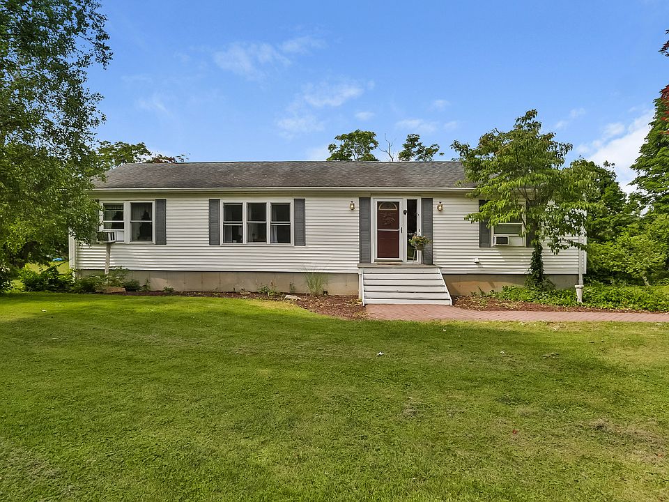 Bike to town! A rare interior lot located off Boston Street, but yet so secluded from the road that you hear nothing but peace and quiet! Ranch sitting on 3/4 of an acre. Large 2 tier deck leading to an above ground pool! This house offers wonderful flat level yard, surrounded by lightly wooded area to keep you private from other homes. The entrance offers a rather large foyer area to greet guests comfortably. Galley style kitchen with eating area, tile floor, tile counters, nice space, pantry closet, sliders leading out to deck and pool area. Dining room has hardwood flooring and tasteful wallpaper. Living room is a good size large windows and hardwood flooring. The master bedroom is on one side of the home with large space, master bathroom, closet space. The other side of the house includes 2 additional bedrooms and full bathroom. Laundry is located on the main floor. The lower level has large space that can be future finished space, as well as large garage area, 2 car garage attached and also can park tandem (potentially 3 cars). Pool has a newer liner. Well pump is 18 months new. Roof was new in 2005. Windows were replaced a couple years ago. 100 amp electrical. The location is fabulous. Close to town, restaurants, shopping, beaches, marina. Guilford has a wonderful Park and Rec program, and access to Jacob's beach and Quonnipaug Lake. The green is an amazing community gathering spot with library, markets, and good eats!