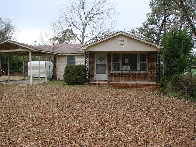 This is an older brick home with a front porch, carport, and fenced yard. There is storage space underneath the house. Inside is a large living room, 2 bedrooms, 2 baths, eat-in kitchen, and another room which could be a family room or dining room. This is close to main roads and shopping.