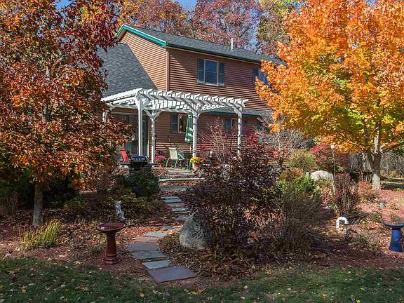 Paradise awaits....your own little piece of heaven tucked on 5.49 acres of park like setting. Set back from the road for maximum privacy. This contemporary colonial has an open concept that is flooded with daylight. Wood beams and a cozy gas fplc grace the LR which opens to the dining area. The view from the Dining area is out onto the slate patio with elegant pergola and perennial plantings. This out of the box floor plan offers 2 bedrooms on the 1st floor and a very unique master bedroom suite upstairs complete with loft and luxurious bath with soaking tub and a walk in closet. There is also a second room which could be the 4th bedroom or office. The roof is BRAND NEW. House is wired for a generator. Finished room in basement has a gas stove. Lots of storage and basement walls have rigid insulation .Truly a one of a kind custom home in the country but not far from amenities! Weeknights after 5:15 pm and weekend showings only please.