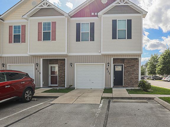 Wonderfully located on an end unit with a single car garage attached. Welcome to 537 Caldwell Loop, located very centrally in Jacksonville NC. This homes' back yard offers you a covered & screened in back patio, vinyl privacy fenced back yard. Inside you will enjoy subway tile backsplash in your kitchen with a pantry cabinet to help store away your groceries. Upstairs are 3 bedrooms to 2 full bathrooms. The Primary bedroom offers dual countertop stink, walk in shower, soaking tub and a very large( 6.1X 13.11) walk in closet