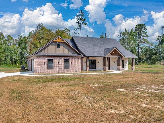 Beautiful new construction on 1.55 acres, perfectly blending modern style with spacious living. This 3-bedroom, 2.5-bath home offers an open-concept design ideal for everyday living and entertaining. The island kitchen features contemporary finishes, generous cabinetry, and plenty of workspace. A split-bedroom layout provides added privacy, while the primary suite serves as a relaxing retreat with a large walk-in closet, soaking tub, separate shower, and dual vanities. Additional highlights include a functional mudroom with extra storage and a well-appointed laundry room with cabinetry, counter space, and a sink. Step outside to a covered patio overlooking the expansive backyard—perfect for unwinding or hosting gatherings. Located in Lufkin ISD, this move-in-ready home offers the best of country living with convenient access to town.