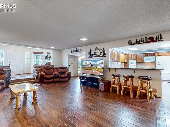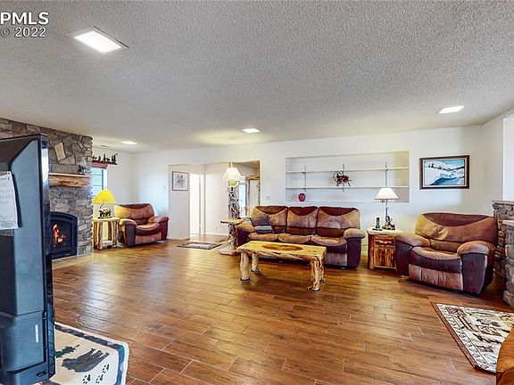 Beautiful ranch style home sitting on one of the prettiest 40 acre pieces of land in Teller County. From the moment you enter the driveway you will fall in love and admire the rolling property that consists of a combination of trees, meadows and breathtaking views to include Pike Peak. Oversized living room with newer tile flooring, stunning fireplace with lots of stone and a eye catching log mantle. Spacious eat-in kitchen with granite countertops, built in oven, and a counter height breakfast bar. Private master suite with attached bathroom with double vanities, walk in closet, gas stove and take in the views while laying in bed. 2 car garage that has an 23’x23’ attached workshop that every hobby enthusiast can enjoy. The property is zoned A-1 (agricultural) and has a domestic well. Rare opportunity to own a property like this.